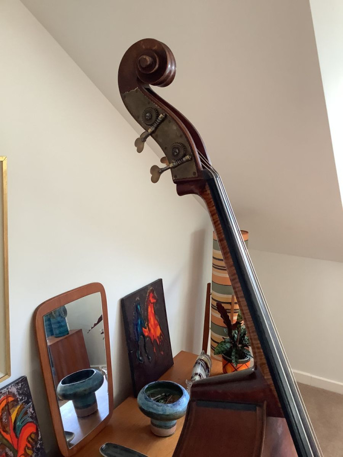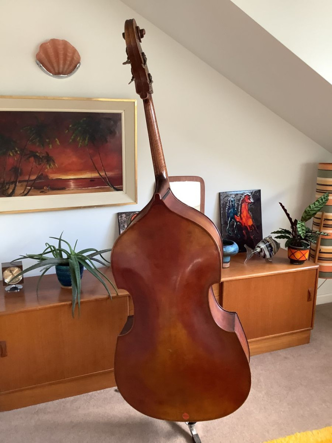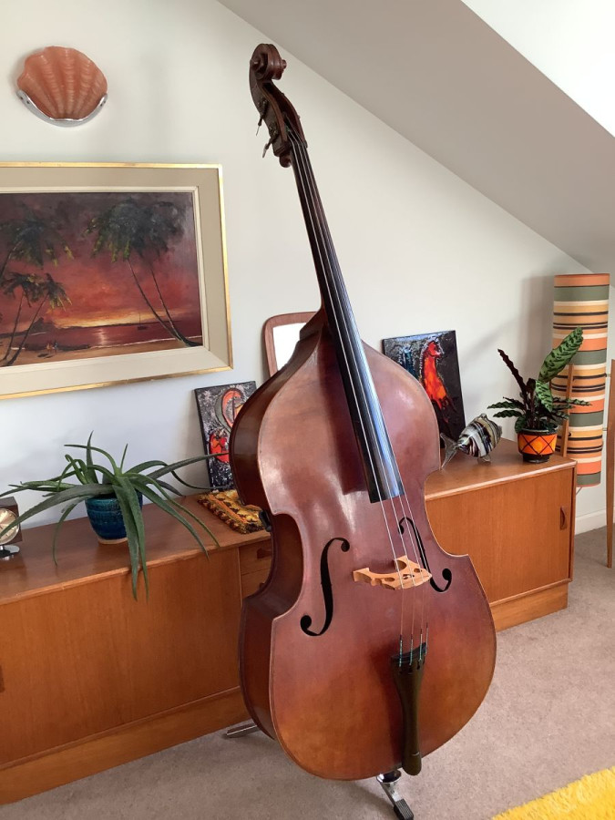 She is in beautiful original condition,and just had new bridge,strings,and Ebony tailpiece fitted.she sounds and plays like a quality 50s instrument should.The strings are Evah Pirazzi.