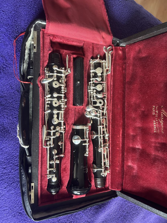 The oboe is wonderfully free and light due to it being made black composite, with never the fear of the instrument cracking or being compromised by temperature fluctuations, but the sound of a Margaux. I have played this oboe in the arctic with -23 degrees outside and in Jordan in 32 degrees, so can attest to the resilience of the material. The instrument comes with original Margaux case and cover.