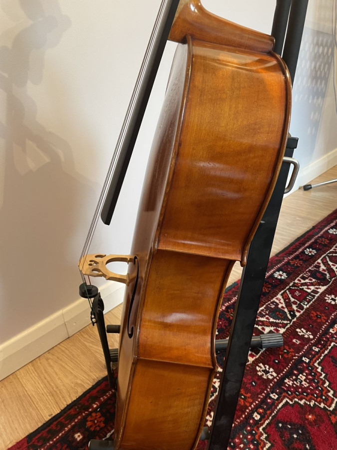 2015 Chinese 7/8 cello set up in the workshops of T A Craig. In beautiful condition. Bought smaller size, to ease the physical demands of playing the cello. This cello wants to be played again! Perfect for a cellist who can't access full size, but needs the tone and strength of a full size instrument.