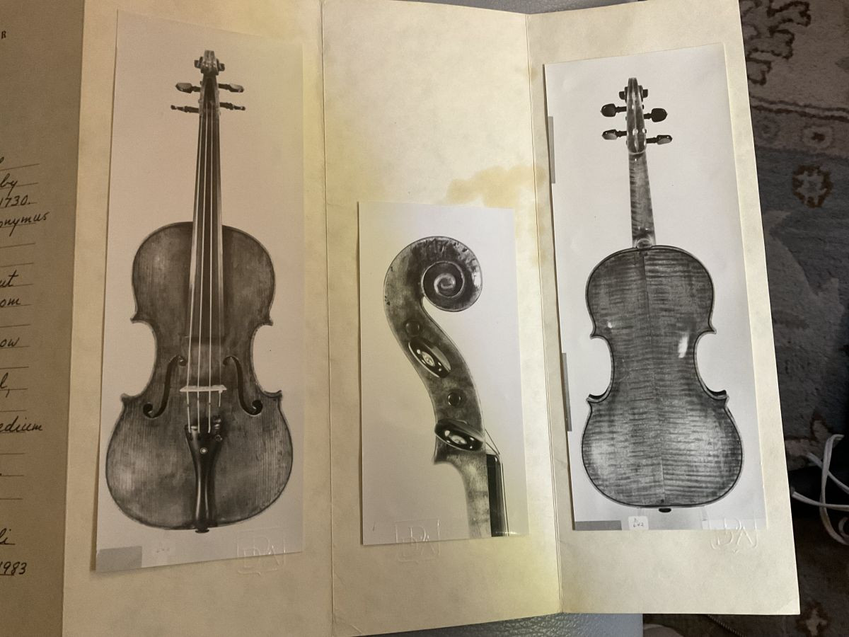 A very fine Italian violin Circa 1734 Bologna Italy. Certificate of Authenticity made in 1983 by Dario D’Attili. Insurance papers at $220,000 US. by Reed Yeboah Violins Inc. NYC and Christopher Reuning
