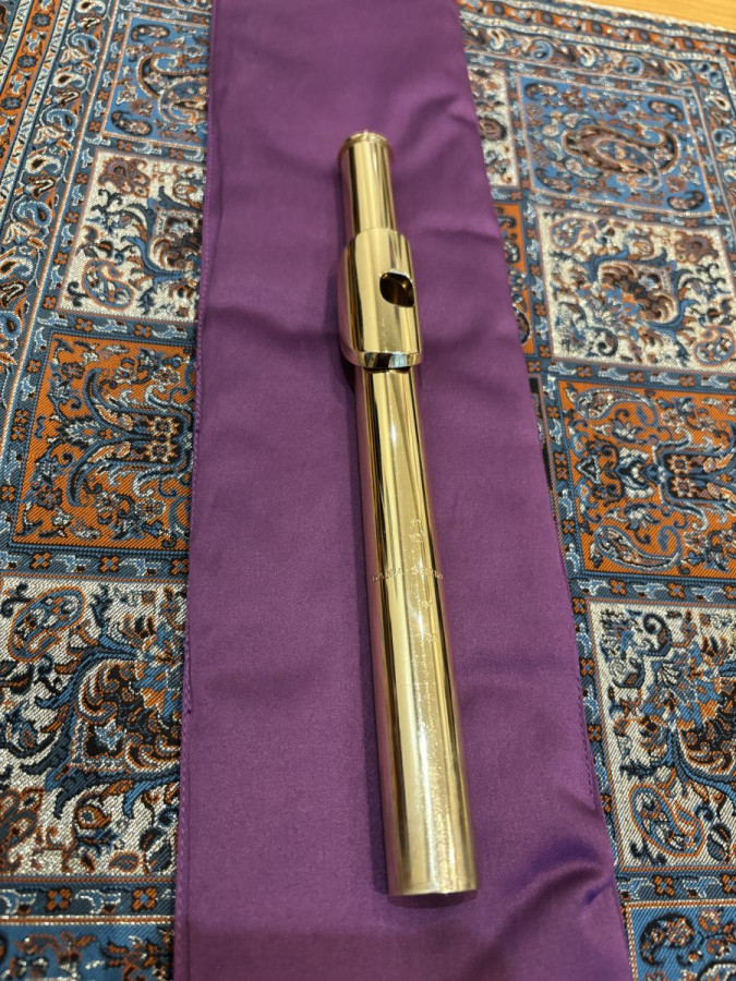 18k gold Sheridan headjoint, brilliant tone, colourful and responsive. Visible in Paris.