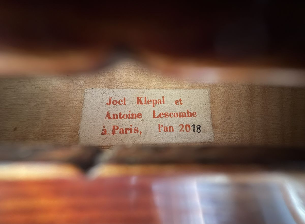 The viola was made by Joël Klepal and Antoine Lescombe in 2018. I played it for seven consecutive years. It is a viola with a very warm sound and is fairly easy to play since the string length is reduced. In fact, this viola was custom-made for a professional violinist who wanted to buy a viola. The viola measures 41.3 cm. Its value is €15,000.