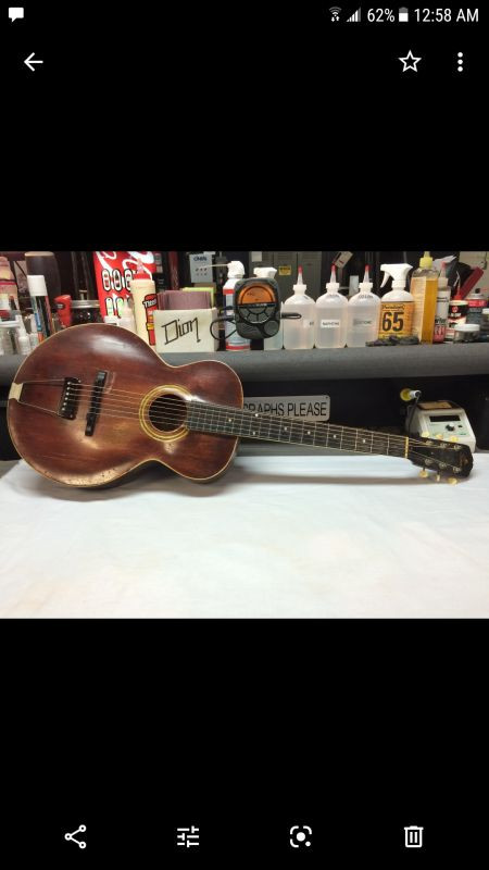 Newly restored by a luthier has guitar case with my name on it, it's a arch top L1 Gibson , vintage beauty was the first Gibson ever made..