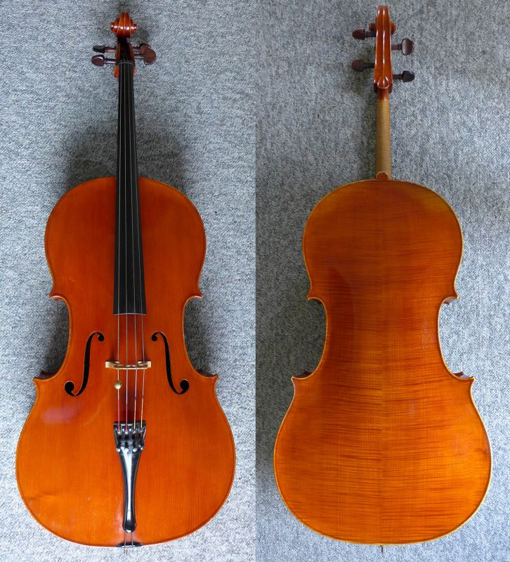 Case with cello, 2 bows, and 1 extra set of strings.